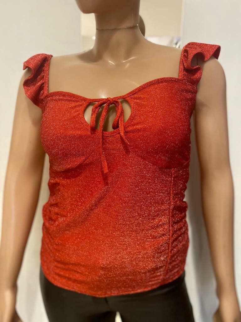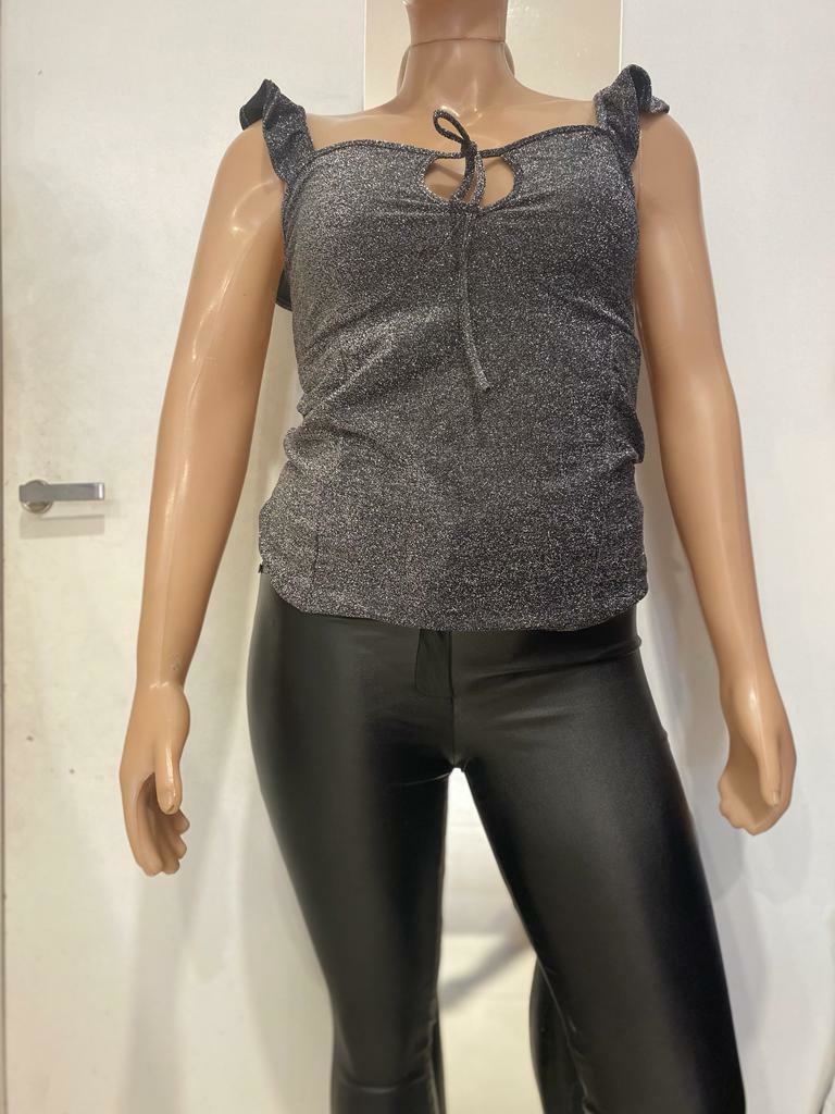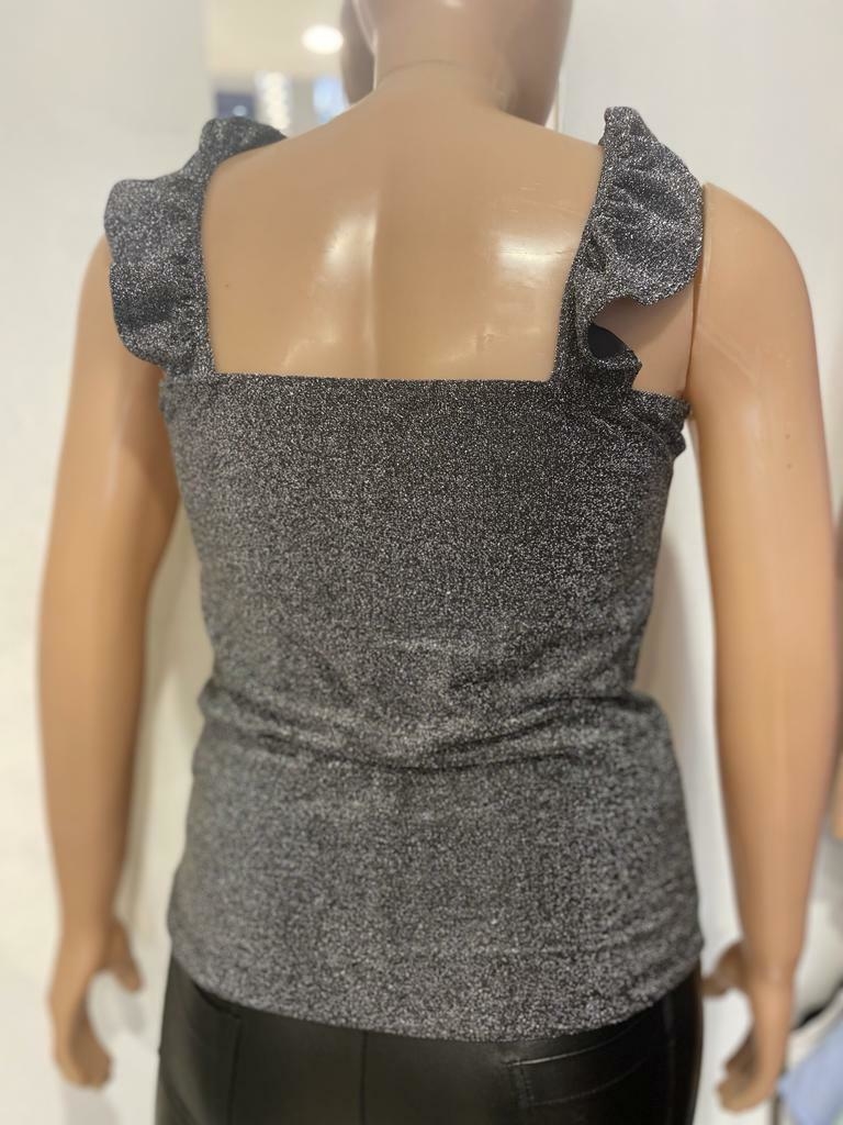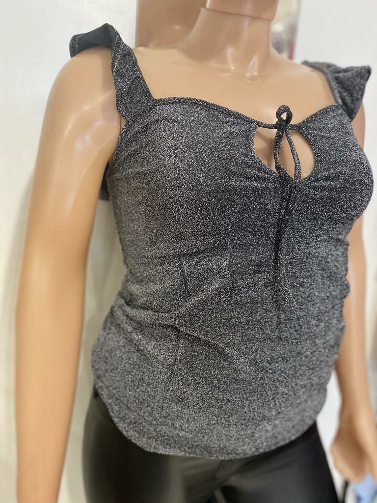 MUSCULOSA DE LUREX, CON BOLADOS EN BRETEL Y ESCOTE CON TIRAS
